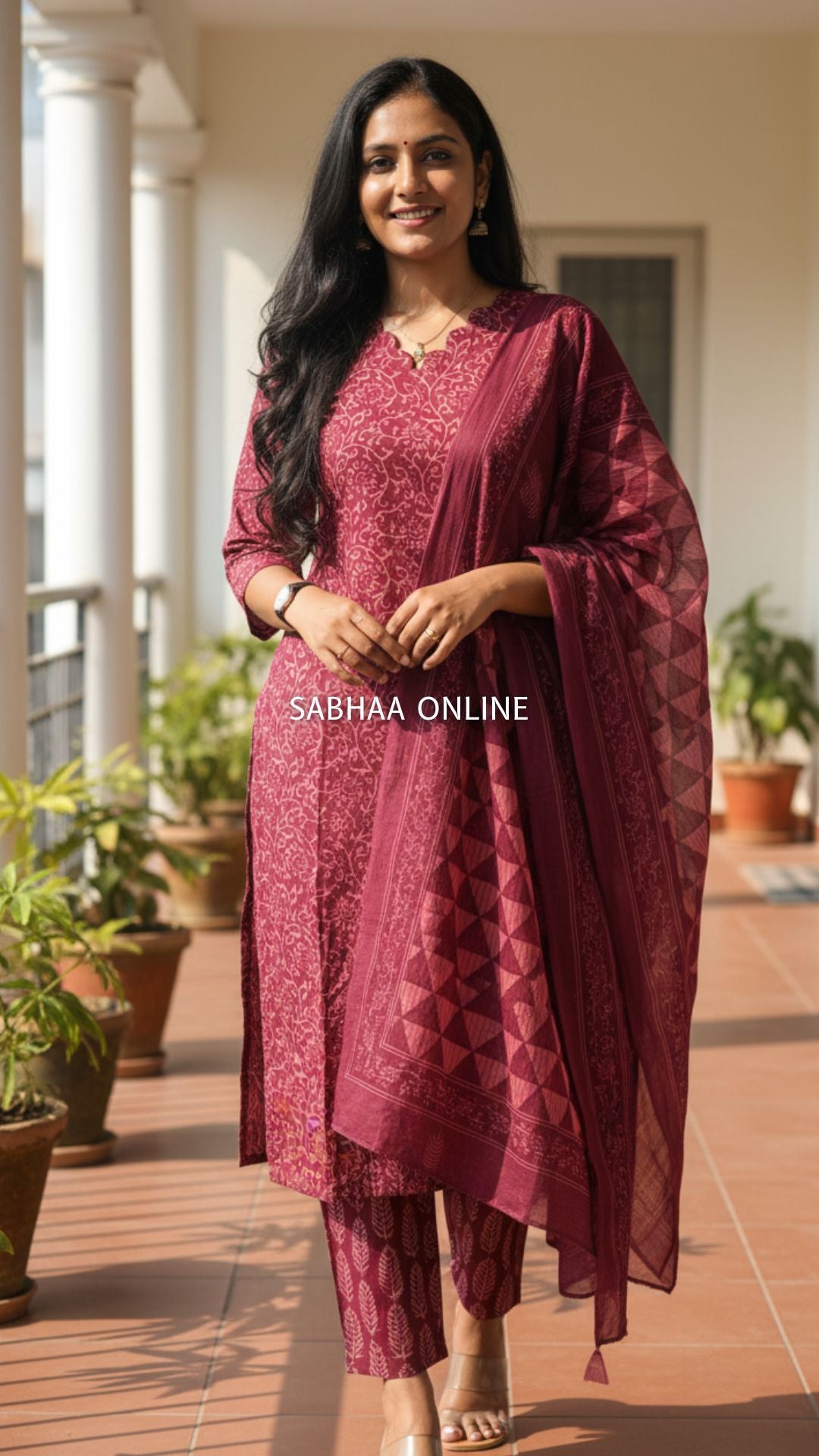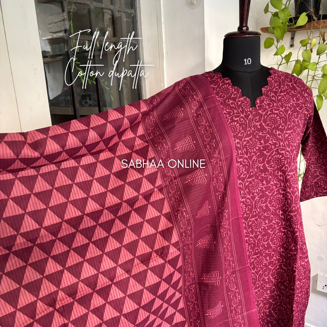 Anuya - Burgundy and Pink Cotton kurti 3pc set with lining- LN6
