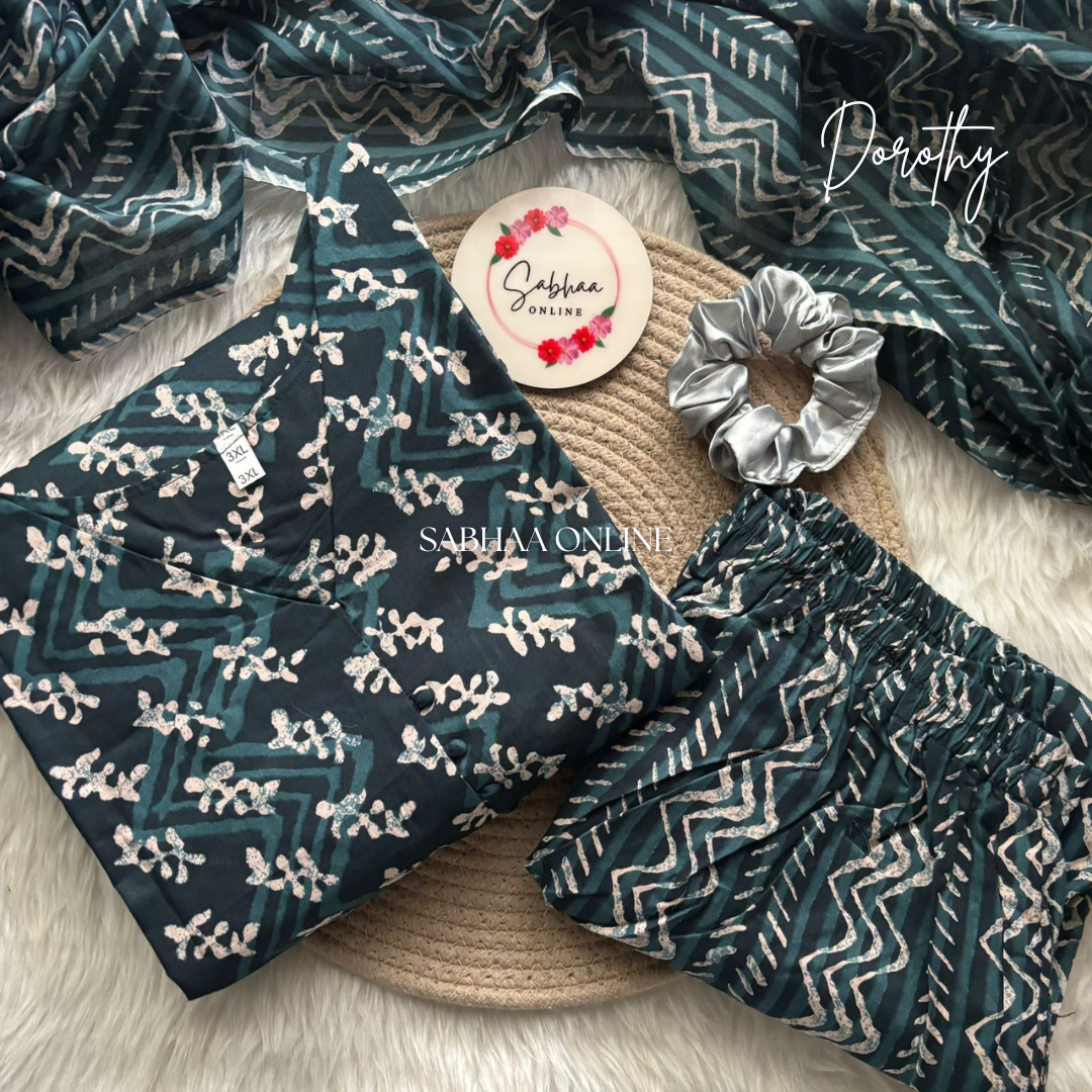 Dorothy - Indigo Blue Cotton Kurti 3pc set with lining