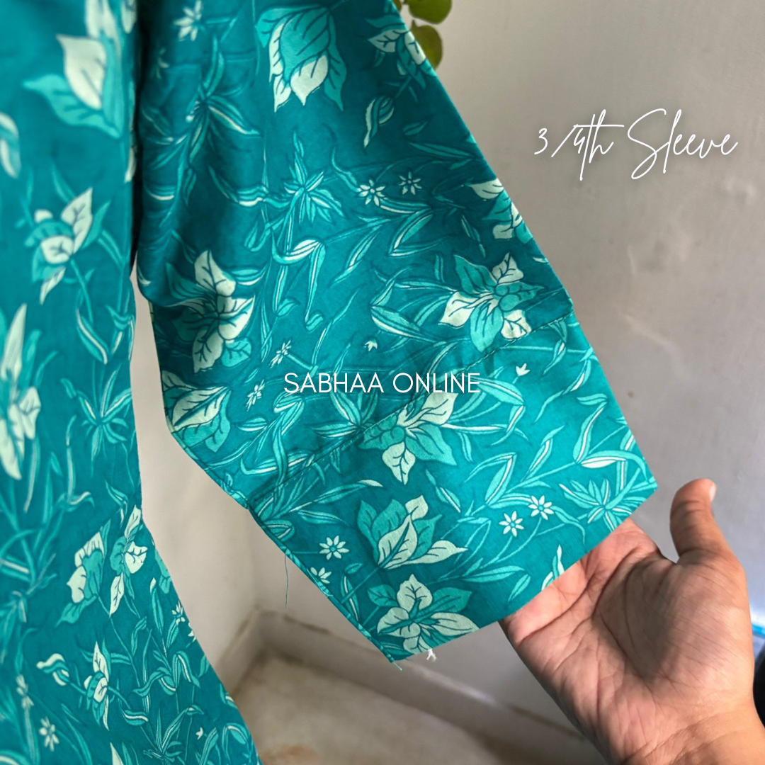 Falguni - Teal Cotton Anarkali Kurti 3pc set with lining