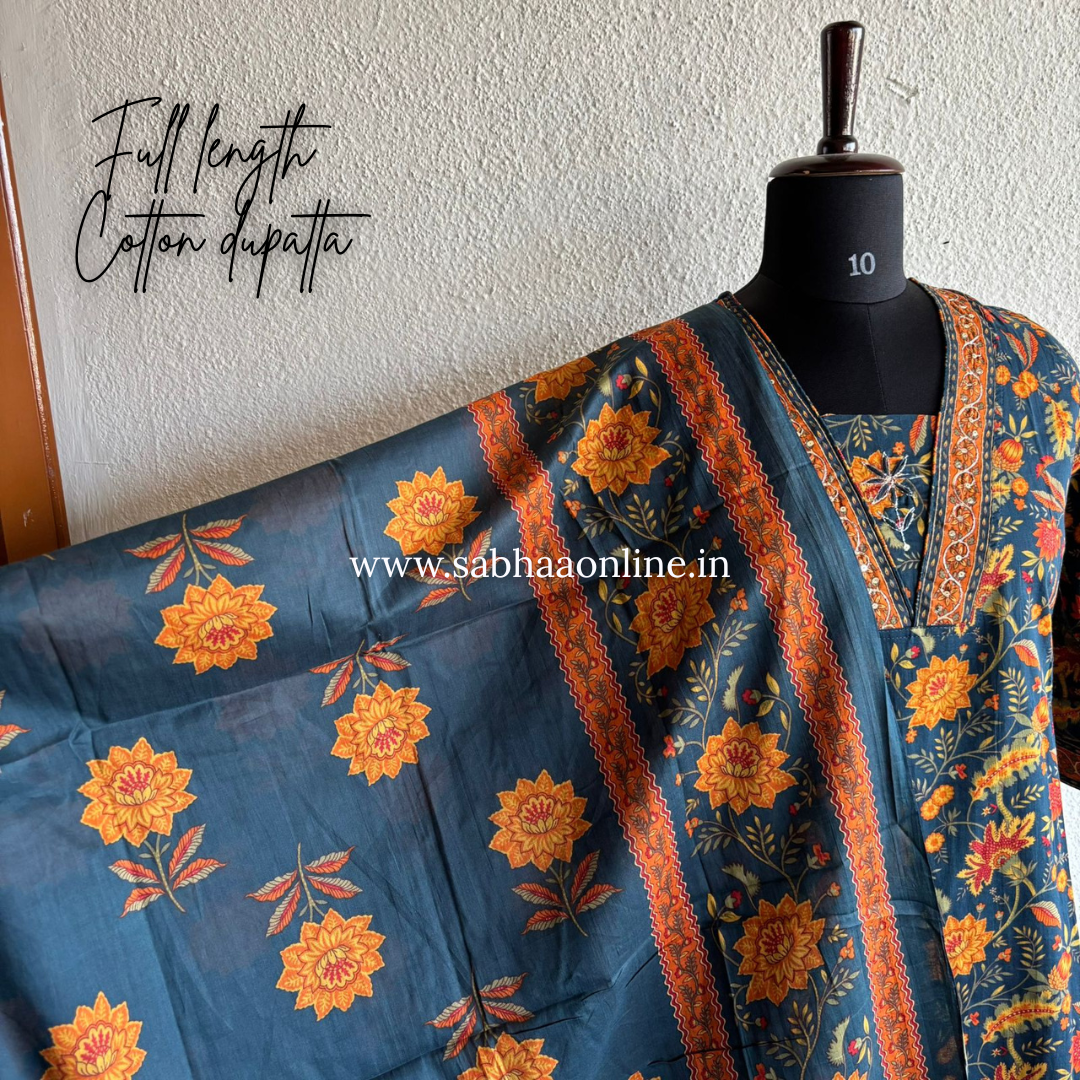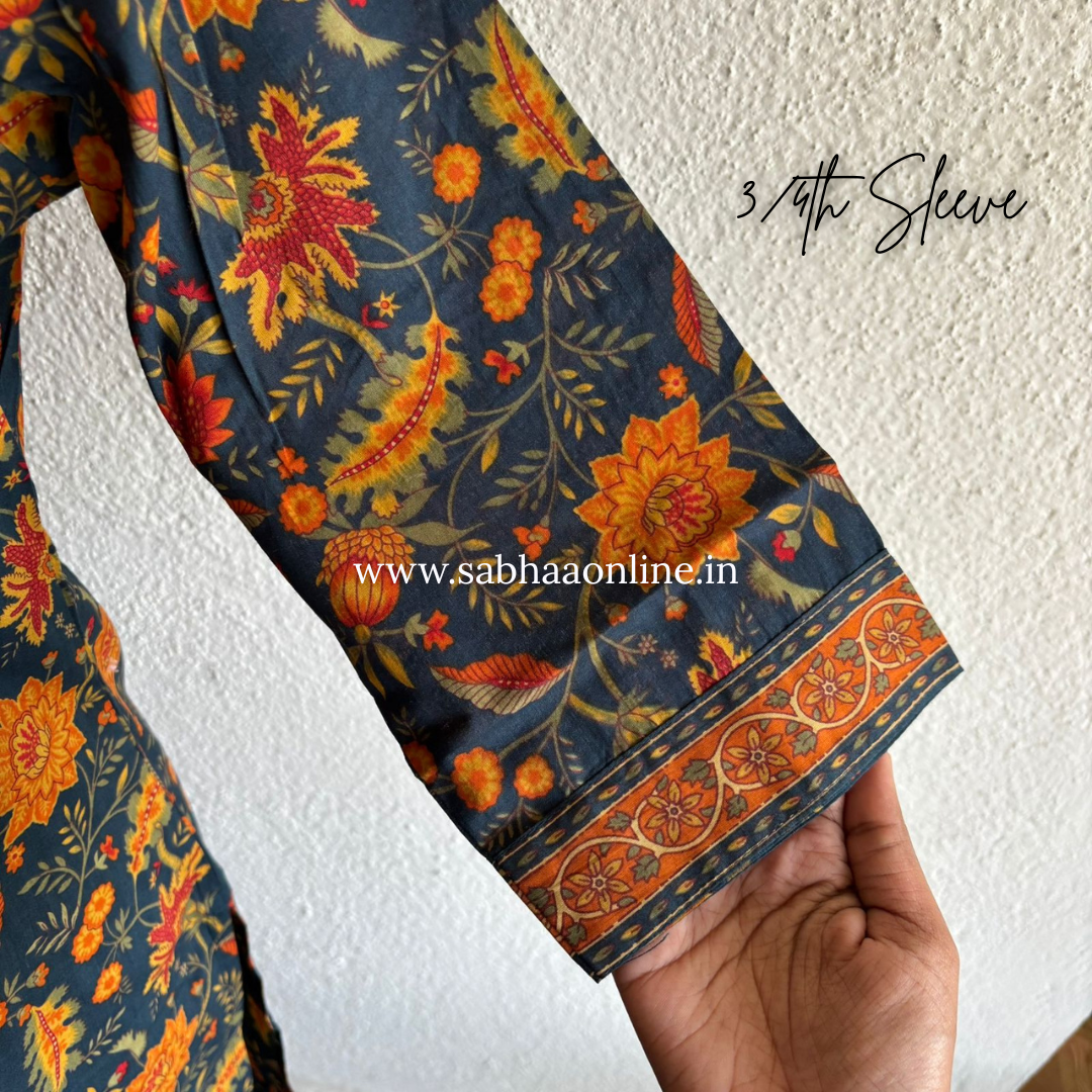 Parvati - Deep Bottle Green and Orange Cotton kurti 3pc set - LN 28