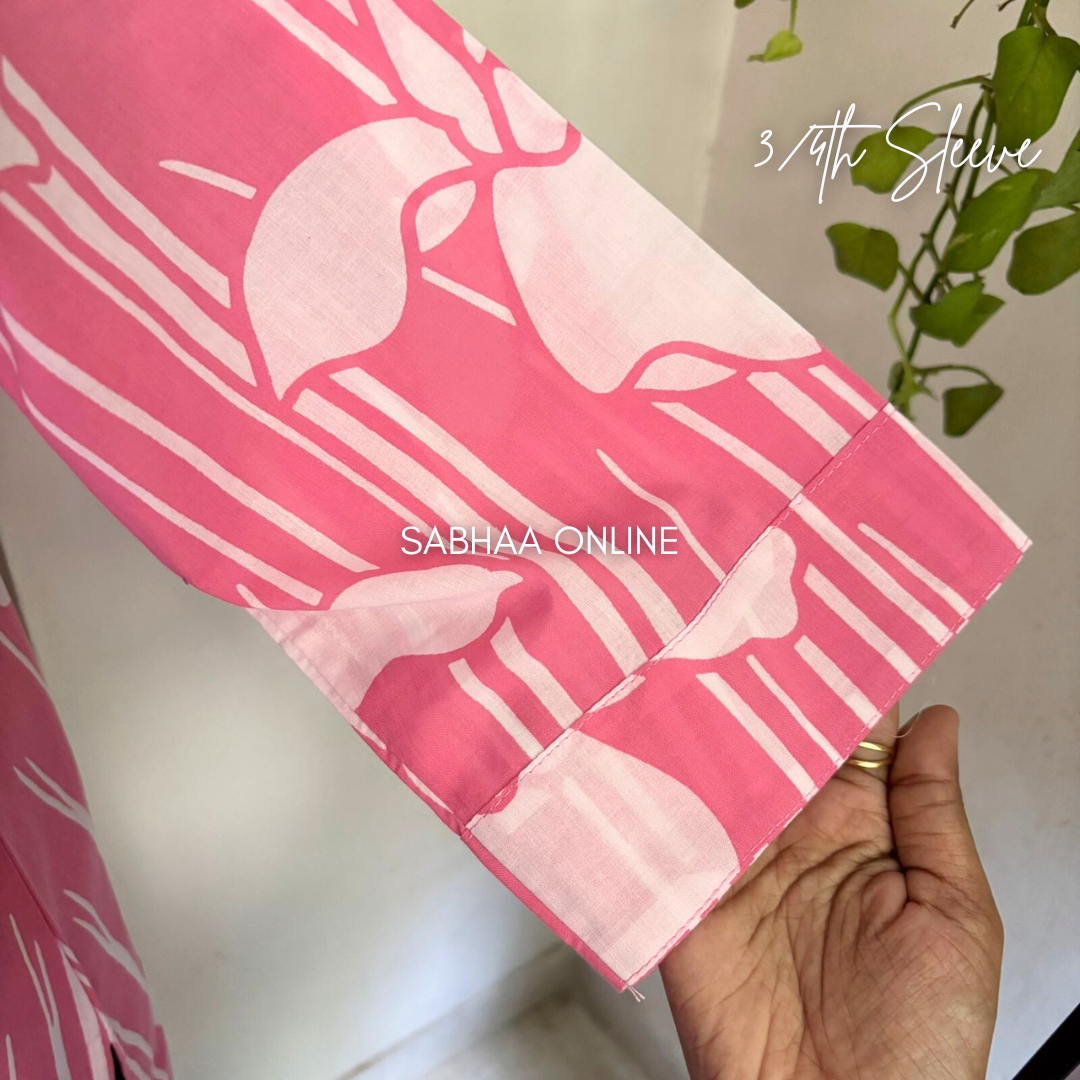 Rhea - Pink and white Cotton kurti 3pc set with lining - LN 11