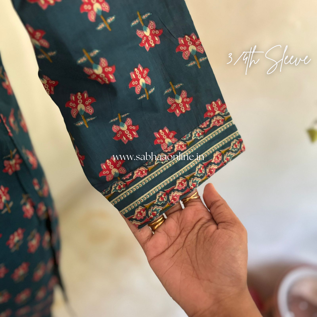 Ruhita - Prussian Blue Cotton kurti 3pc set - LN23