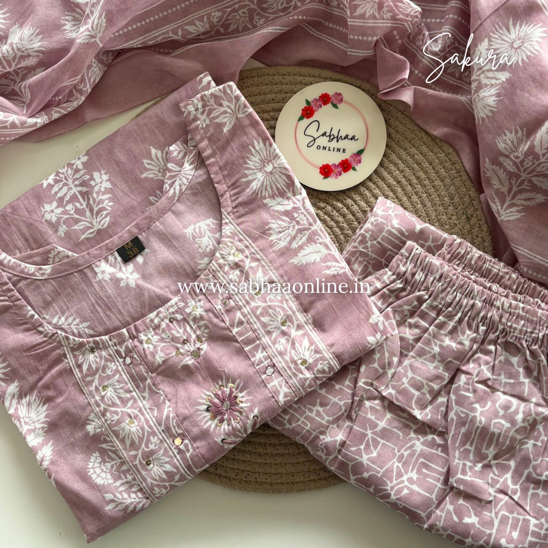 Sakura - Dust Rose Cotton kurti 3pc set - LN 25