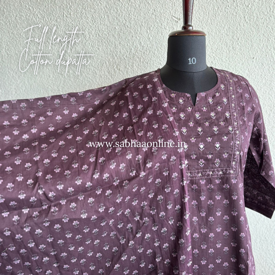 Sayali - Deep Plum Cotton kurti 3pc set - LN 25