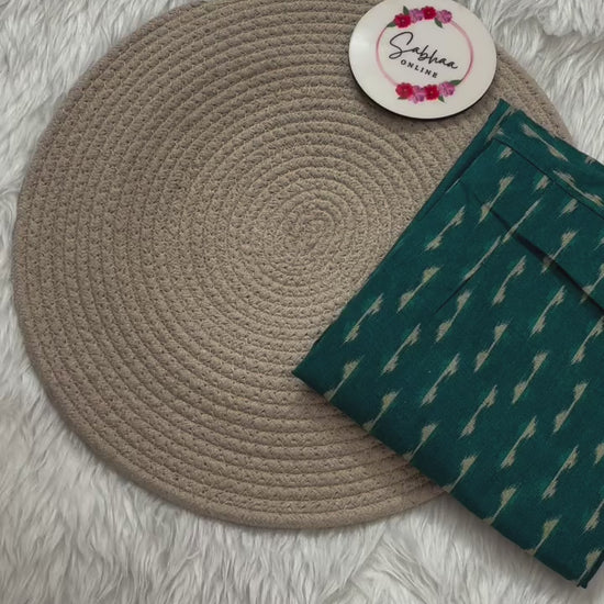 Triloka - Peacock Blue Ikkat Cotton kurti pant set (with lining)